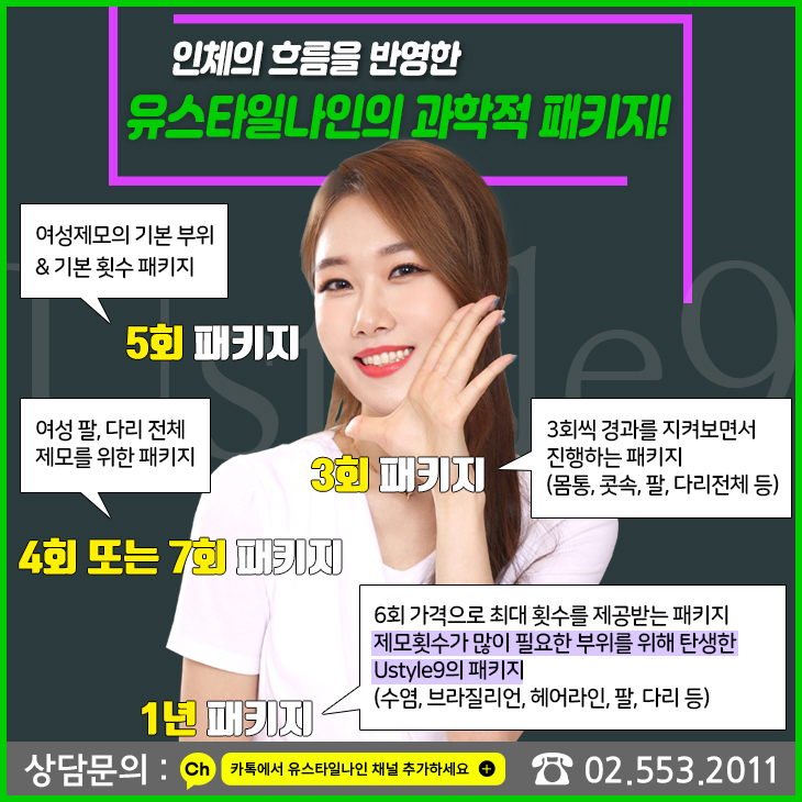 브라질리언 부위의 경우 털의 생장주기에 맞춰 5~8주의 간격으로 7~8회 이상의 시술을 권장드리는데요. 단, 5회 이하의 시술에서는 재발도가 높기 때문에 권장드리지 않아요. 이렇게 여러번의 시술을 위해서는 병원의 교통이 좋아야 방문하기가 어렵지 않겠죠? 유스타일나인은 강남에서도 교통이 좋은 강남역 11번 출구 바로 앞 글라스타워 3층에 오시면 만날 수 있답니다! 평일 저녁은 8시 30분까지 운영하고 있으니 편하게 퇴근 후나 약속 전에 오셔서 시술받으시면 되겠죠?