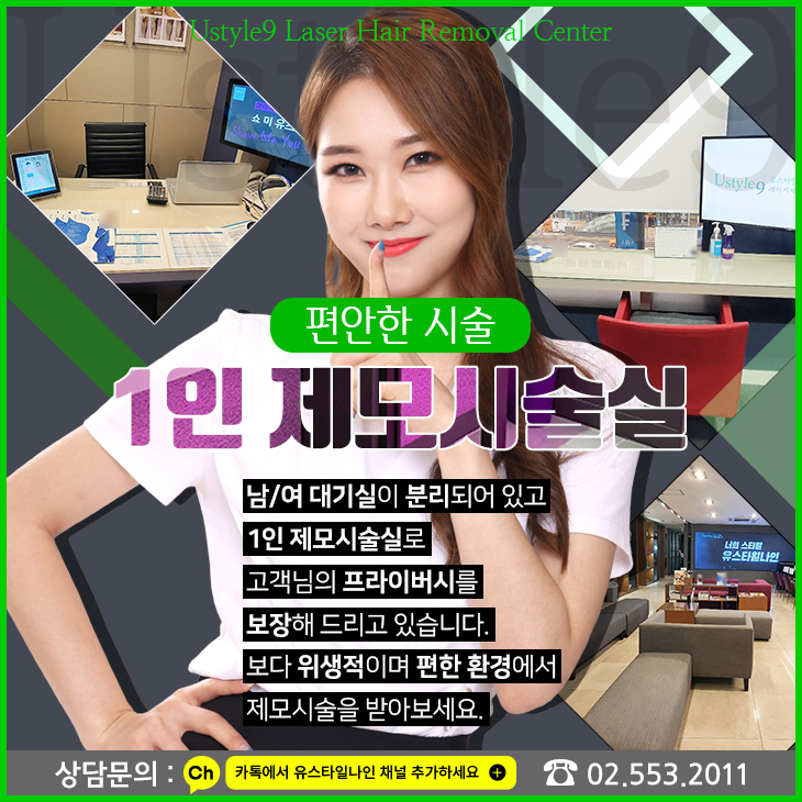 강남여자브라질리언레이저제모가격과 함께 가장 중요하게 봐야할 것이 프라이버시가 지켜지는지의 여부인데요. 유스타일나인은 대기실부터 남/여 분리된 1인 대기실을 사용하고 있기 때문에 다른사람과의 동선을 최소화 할 수 있어요. 시술실 역시 1인 제모시술실로 운영되고 있기 때문에 다른사람이 혹시 지나갈까 하는 고민없이 편안하고 쾌적한 환경에서 레이저제모에만 집중이 가능하답니다!