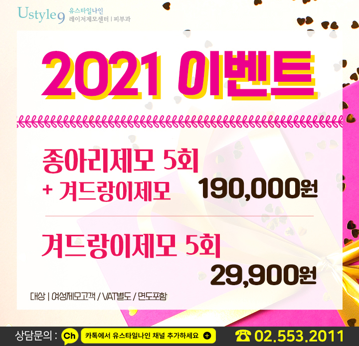 앞서 말했듯이 미용의 목적도 있겠지만 청결의 목적도 있으실 거에요. 여성의 경우라면 더더욱 말이죠. 여성의 감염성 질환을 예방할 수 있음은 물론이고 생리기간에 불쾌함도 줄일 수 있어요. 또한 성교통 해소를 위해 파트너를 배려하는 마음에 시술을 하시는 분들도 계시답니다!