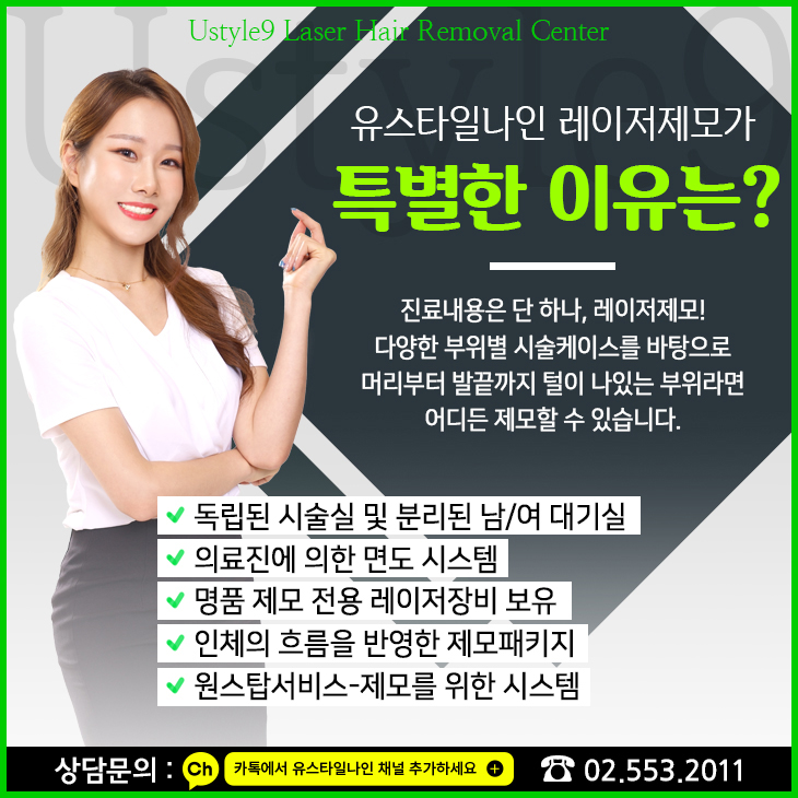 - 제모 상담은 하단의 카톡/전화/홈페이지를 통해서 자세하게 받아보실 수 있습니다!