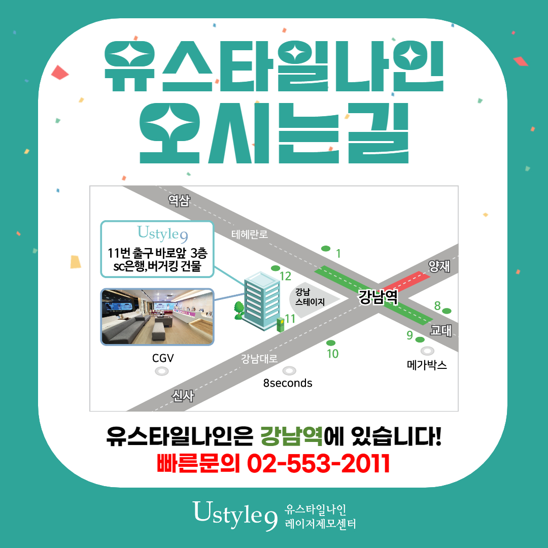 유스타일나인에서는 강남비키니라인제모 뿐만아니라 다양한 전신의 50여가지 부위를 제모할 수 있는데요. 제모에 대한 고민이 있으시다면 지금 바로 상담 먼저 받아보시길 바랍니다.