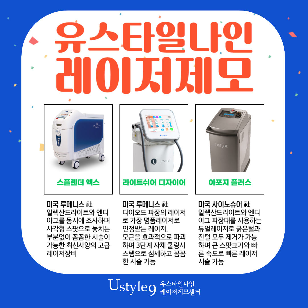 여름휴가를 위해 열심히 다이어트를 하고 있거나, 즐겁게 휴가계획을 짜고 있으신분들도 많으실것같은데요~ 오늘은 유스타일나인과 함께 털관리, 레이저로 교대제모 찾으시는 분들께 알려드리려고 합니다~!