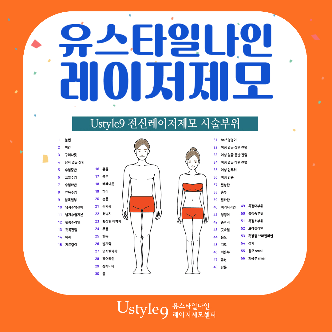 역삼제모 피부과 유스타일나인에서는 레이저를 이용한 털제거로 전신의 다양한 부위들을 시술하고 있습니다. 겨드랑이,종아리,인중,팔,손,다리,몸통,브라질리언,발,수염,헤어라인,뒷목 등 털이 자라나는 모든 부위에 대하여 다양하게 적용이 가능한데요. 개인의 피부 상태나 부위, 털의 굵기 등에 따라서 시술 횟수와 간격은 달라질수있습니다. 평균 5주~8주사이에 한번씩 시술을 꾸준하게 받으면 정말 깔끔해진 피부를 보실 수 있습니다.