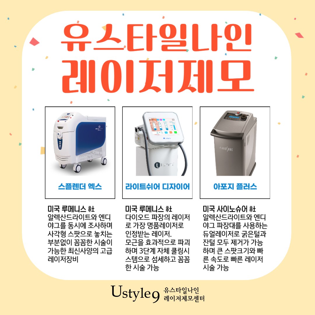 [완성도 높은 시술=만족도 높은 시술] 인상의 변화도 깔끔 시원하게 만들 수 있구요. 다만 밀도 높은 시술이라 고성능 장비를 갖춘 병원을 알아보셔야만 해요. 그래서 강남헤어라인제모 잘하는 유스타일나인이 큰도움이 될 거 같아요. 유스타일나인은 오랜시간동안 레이저제모를 해 온 병원이에요. 2007년부터 지금까지 레이저제모를 해 온 곳으로 풍부한 경험과 56가지 전신레이저제모를 하는 병원이죠. 이 많은 부위를 완성도 높게 시술하기 위해서는 1~2가지 장비로는 어림없겠죠?