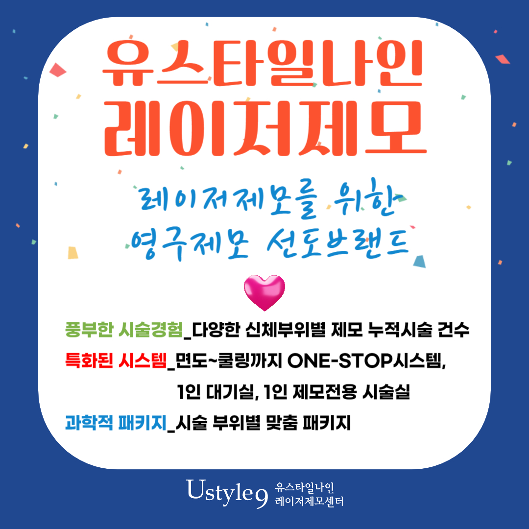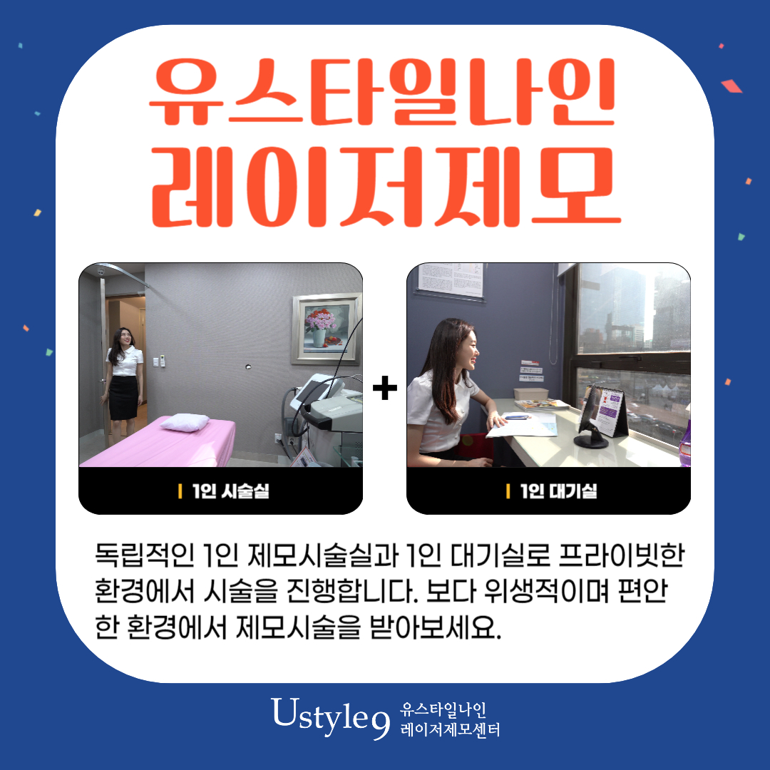 또 현재 유스타일나인에서 제모하신다면 여성분들은 겨드랑이제모 서비스도 받아보실 수 있고 원 바이 원 서비스도 함께 이용해 볼 수 있으니 상담 받아보시는 건 어떠실까요? 좁은이마는 물론이고 뒷목이 덥수룩한 털들도 정리할 수 있으니 세부적으로 원하는 부위에 대한 상담 진행해 보세요~