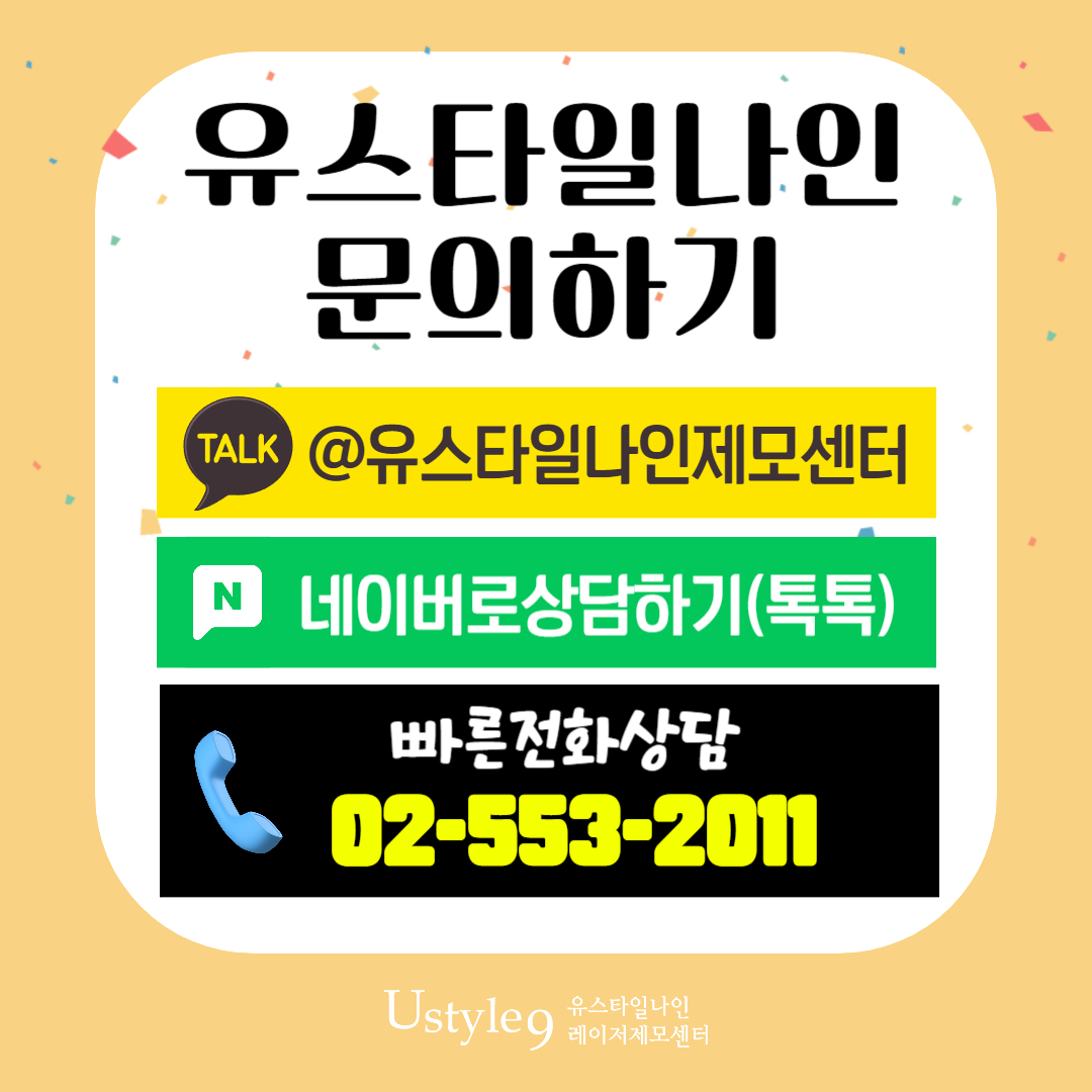 보통 레이저제모 하실 때 가격비교만 단순하게 하기도 합니다. 그렇다보니 10번을 넘게 해도 털의 양만 조금 줄고 털이 그대로 자라는 경우도 많습니다. 그래서 영구적인 효과가 없다고 생각하시거나 재시술을 위해 다시 다른 병원 알아보시는 분들도 많죠. 유스타일나인은 다양한 고성능 레이저들로 시술을 진행하고 있습니다. 항문털레이저제모 시술 시 한가지 레이저만이 아니라 다양한 고성능 레이저를 섞어서 진행하고 있어 시술 후의 만족감이 높기도 합니다. 현재 국내에 처음 도입된 듀얼파장의 스플랜더 엑스와 업그레이드 된 클라리티2, 많은 사람들이 알고 있는 아포지플러스 등 다양한 피부 비접촉식 공중사양방식의 레이저를 사용하고 있어요.
