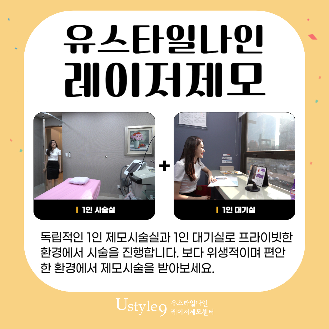 유스타일나인은 미용의 메카인 강남에서도 오랜시간동안 레이저제모를 해온 병원이에요. 그만큼 풍부한 경험과 시술노하우가 있는 병원으로 하나의 레이저만 사용하지 않죠! 꼭 브라질리언 부위 모두를 정리하지 않더라도 세부적으로 엉덩이털 부분이 가능하시구요! 엉덩이털과 함께 항문털 까지 함께 고성능 레이저로 선택적으로 모근 및 모낭을 효과적으로 파괴하는 시술을 받아보실 수 있습니다.