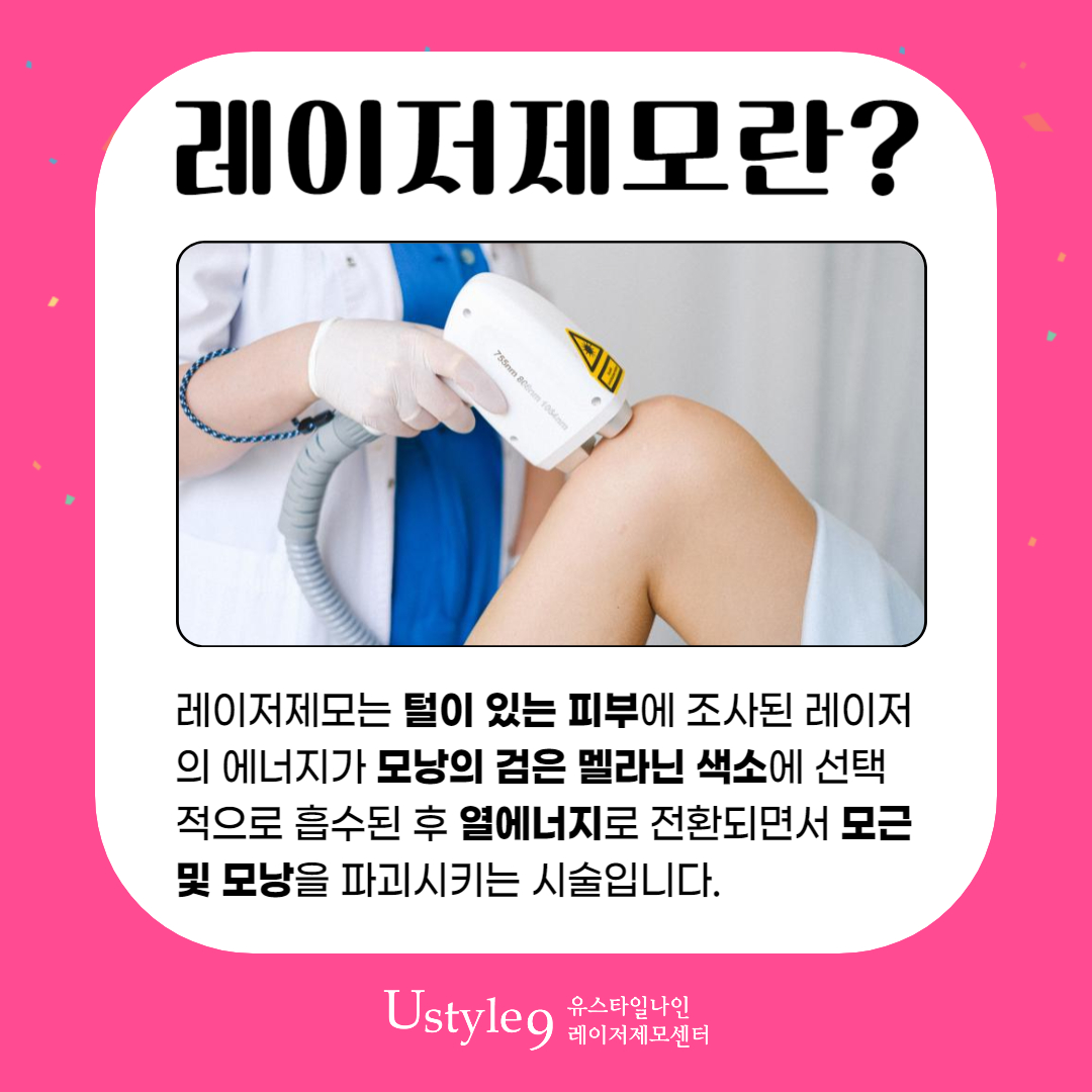 그래서 이런 단점들을 보완한 방법이 바로 레이저제모인데요. 레이저제모는 털이 있는 피부에 조사된 레이저의 에너지가 모낭의 검은 멜라닌 색소에 선택적으로 흡수된 후 열에너지로 전환되면서 모근과 모낭을 파괴하는 원리에요. 그렇기 때문에 피부의 자극은 줄이면서 털만 골라 제거가 가능한 것인데요.
