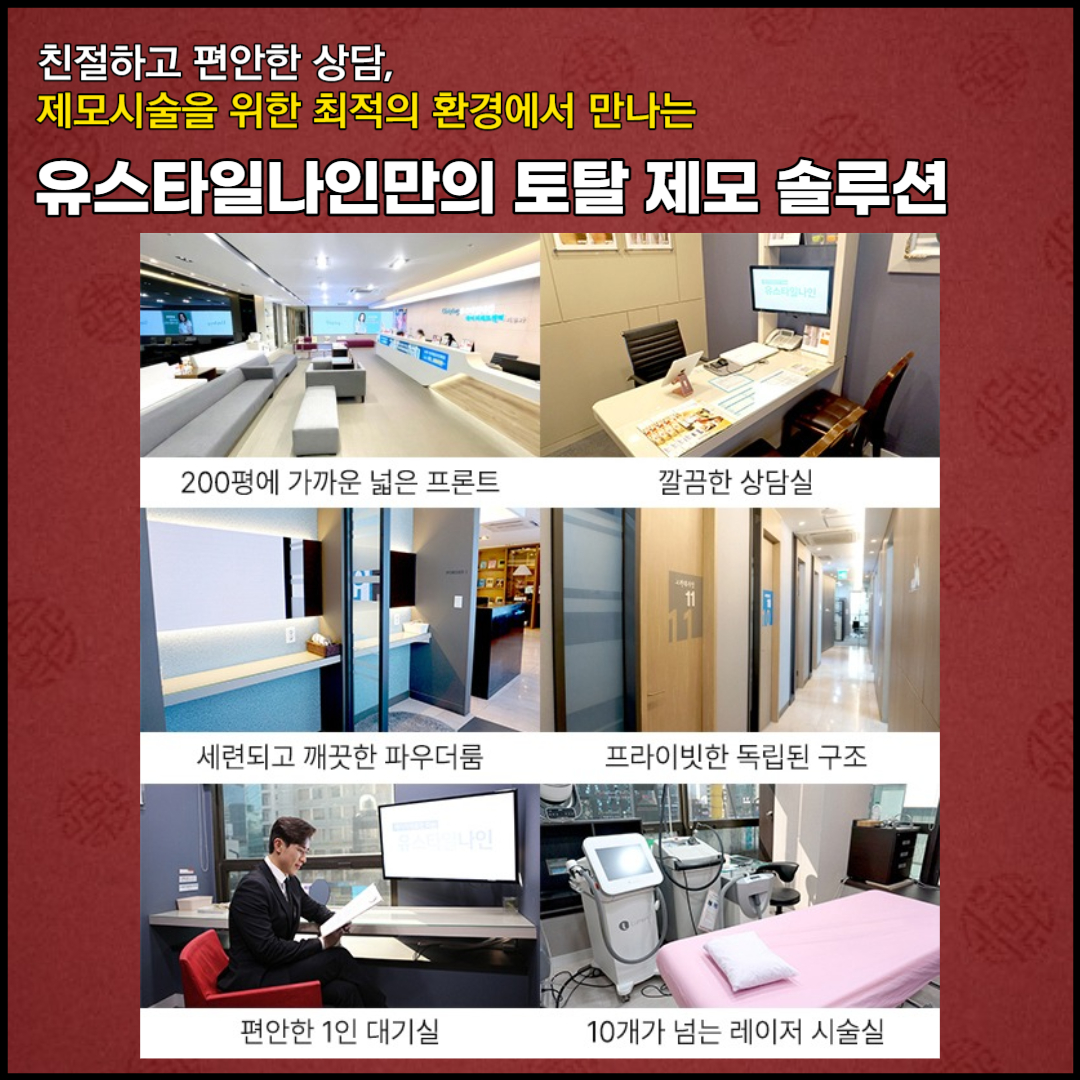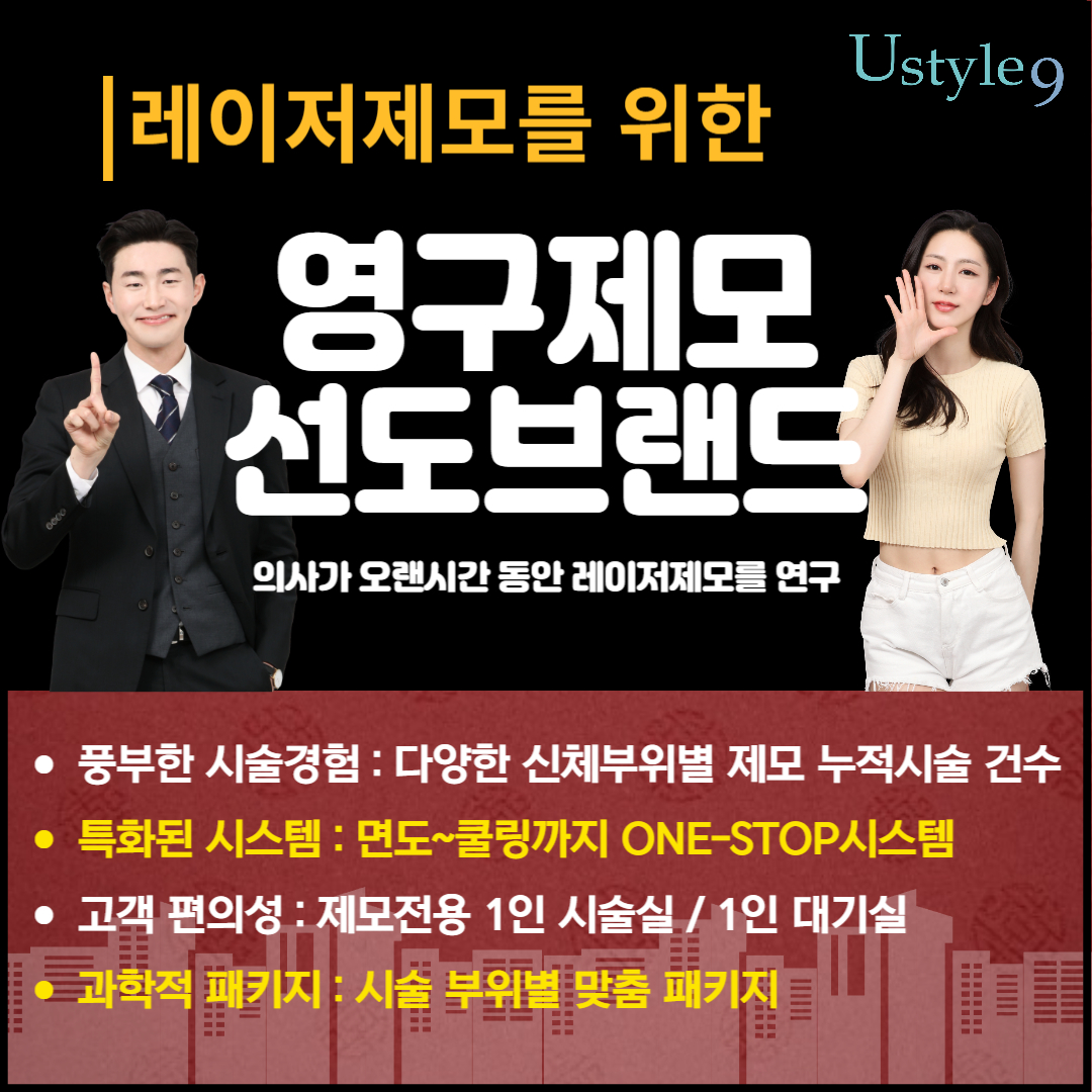 제모를 위한 시스템이 갖춰지고 시술하는 의료진의 경험과 노하우도 풍부할수록 시술 결과에도 차이가 있을 수 있지만, 고객의 편의성에도 차이가 있습니다. 면도부터 시술 후 관리까지 의료진이 모두 다 전담해서 한다면? 고객은 정말 편하겠죠. 유스타일나인에서는 여자전신제모에 대한 시스템과 노하우 등이 모두 집합체가되어 보다 안정감있고 퀄리티가 높은 제모시술을 하고 있습니다.