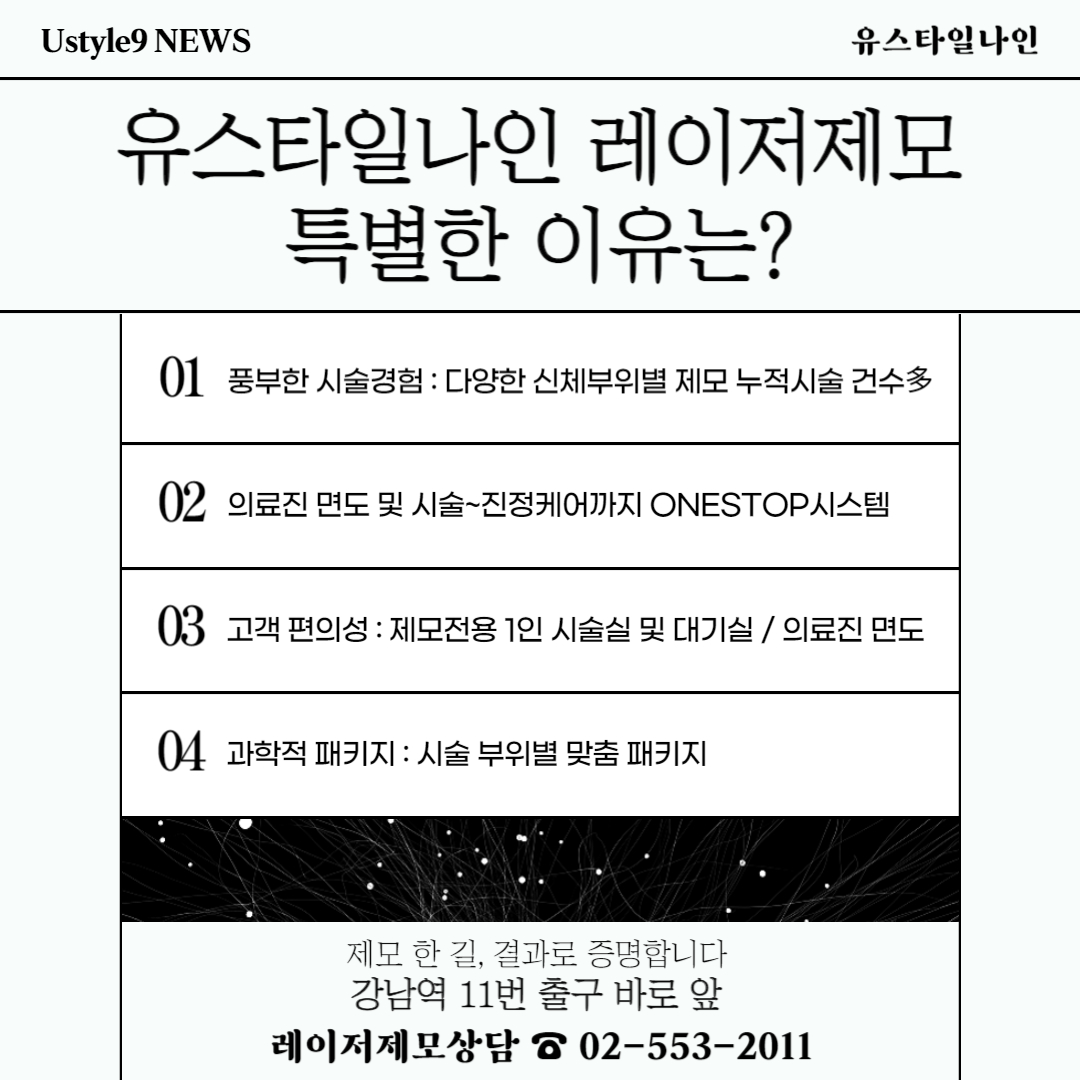 대한민국 레이저제모의 기준이 되는 곳 유스타일나인 레이저제모센터
