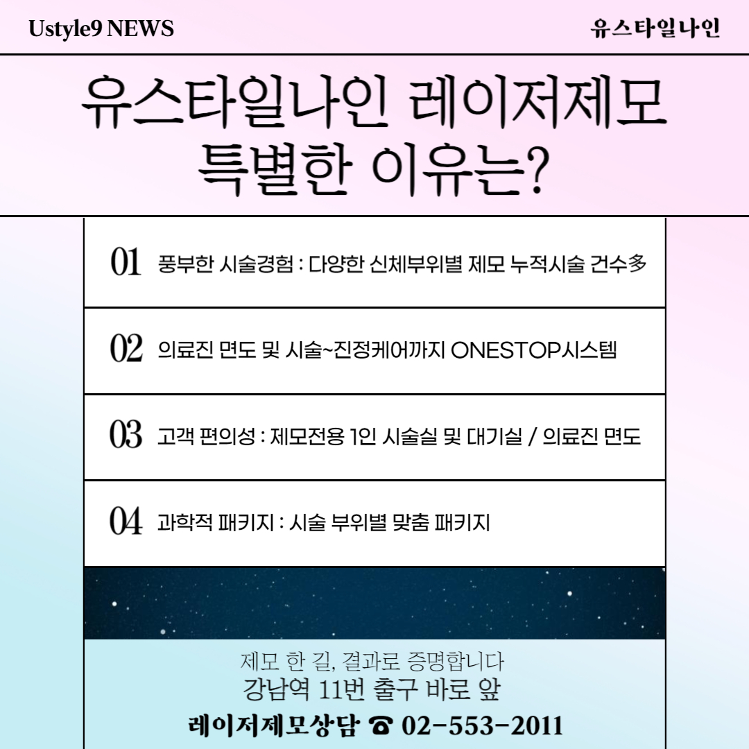 대한민국 레이저제모의 기준이 되는 곳 유스타일나인 레이저제모센터