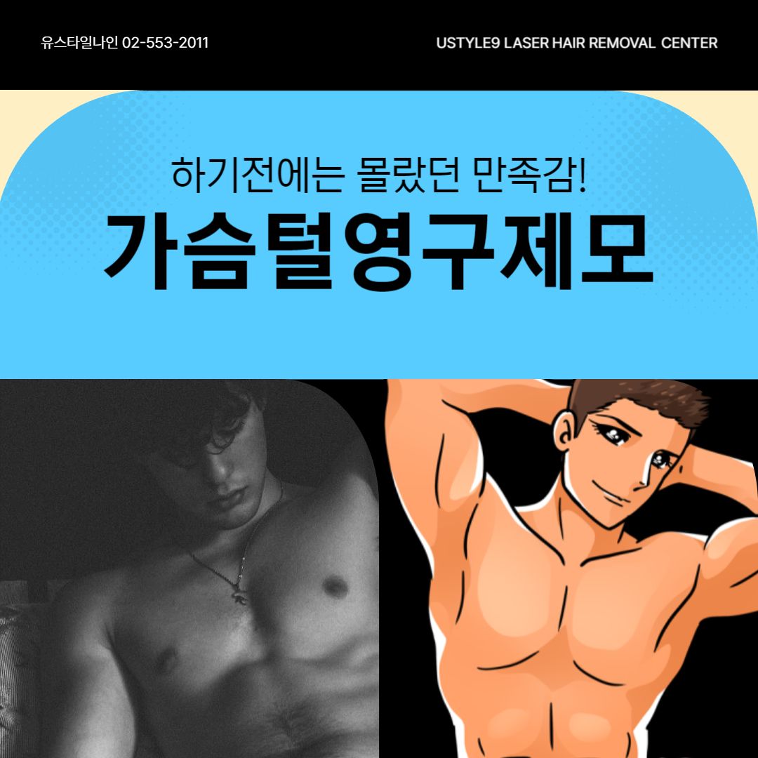 가슴털로 인한고민은 남성만의 고민이 아닙니다. 남성과 여성 모두 컴플렉스로 신경쓰이는 가슴털을 감추려 하지말고 깨끗하게 없앨 수 있도록 강남역 11번 출구 바로앞에 있는 유스타일나인에서 안정감있고 만족도 높은 털 관리를 시작해보시기 바랍니다.