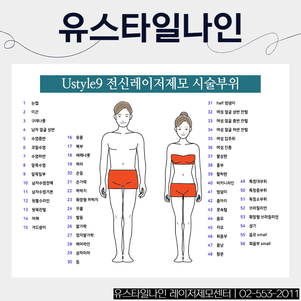 수염/브라질리언/헤어라인/팔/다리 등 전신 56개부위 레이저제모, 강남역 11번출구에서 10m