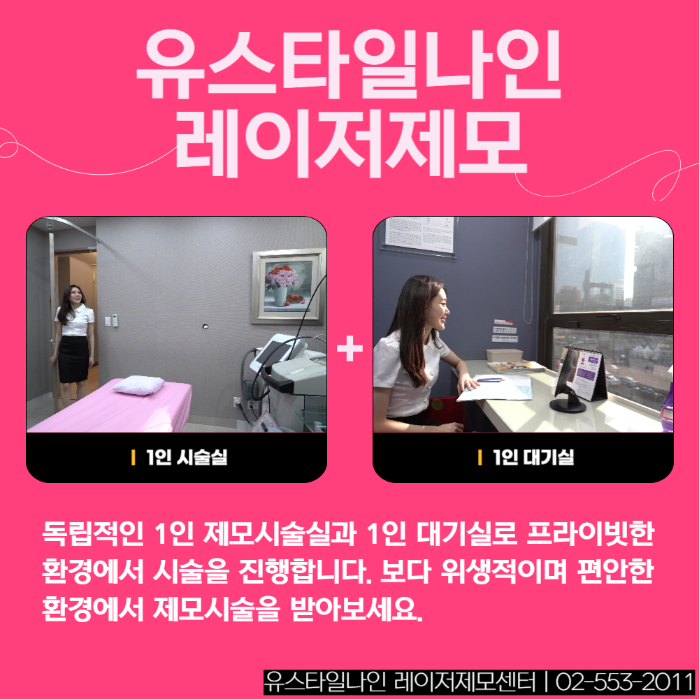 강남역11번출구 바로앞에 있는 유스타일나인은 레이저제모만을 전문적으로 시술하는 곳으로 제모에 대 아무것도 모르는 분이라도 걱정없이 쉽고 편리하게 이용할 수 있는 곳 입니다. 모든 시스템이 제모에 맞추어져 있기 때문에 내원하는 고객은 사전에 이런저런 준비할 것 없이 방문만 하면 되는 원스탑 시스템으로 전과정이 진행됩니다.